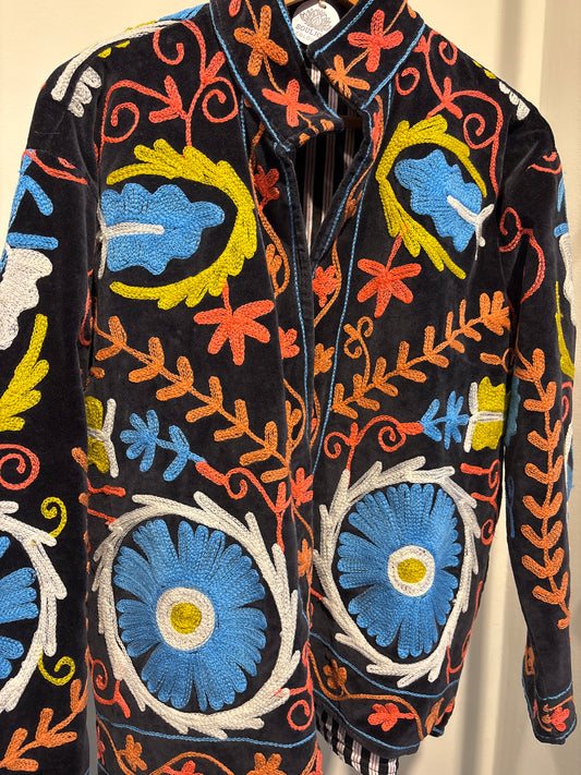 Denim suzani jas kort