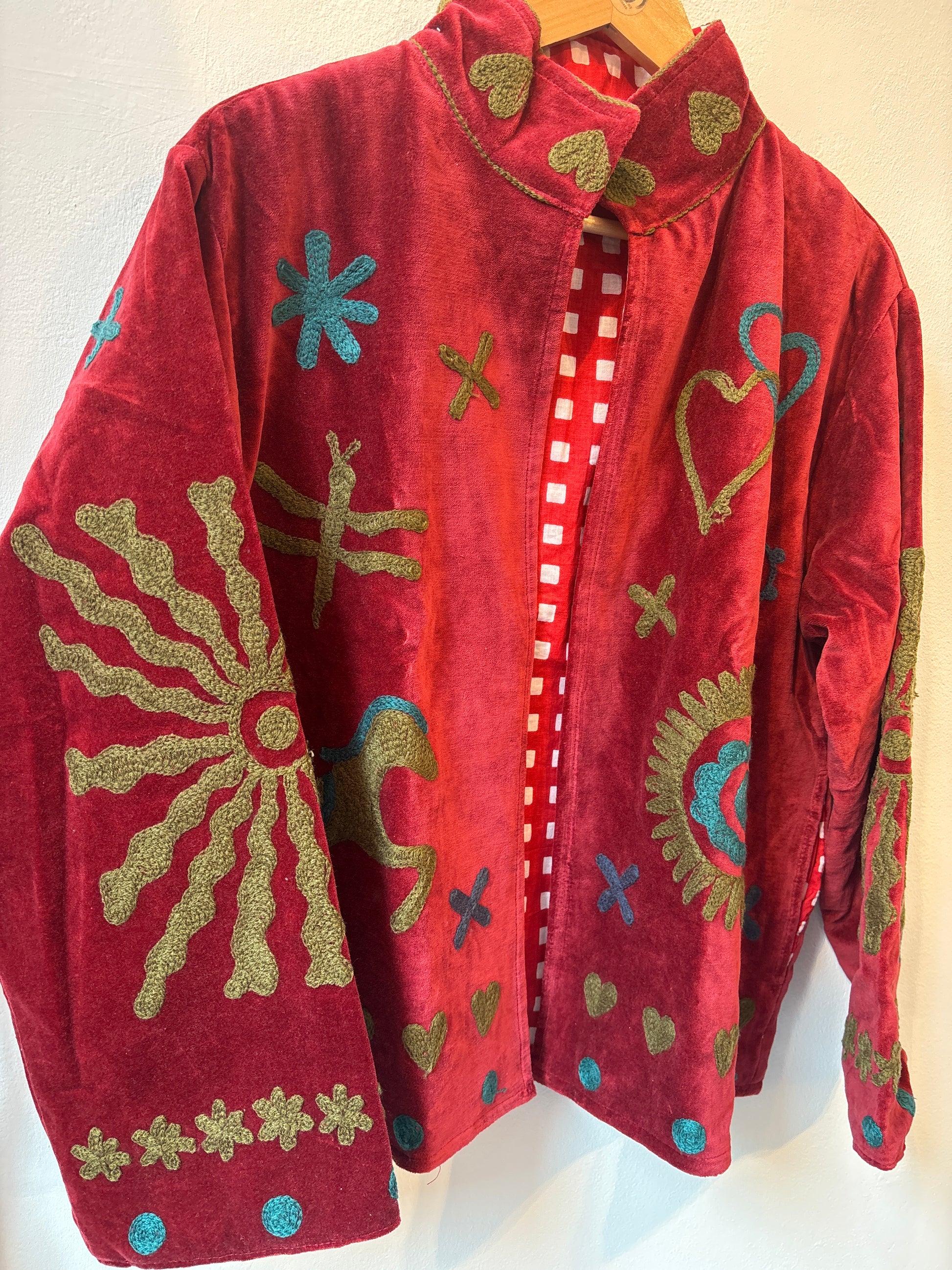 Deze suzani kleden worden oorspronkelijk gemaakt door de bruid en haar moeder en staat symbool voor vruchtbaarheid en geluk.